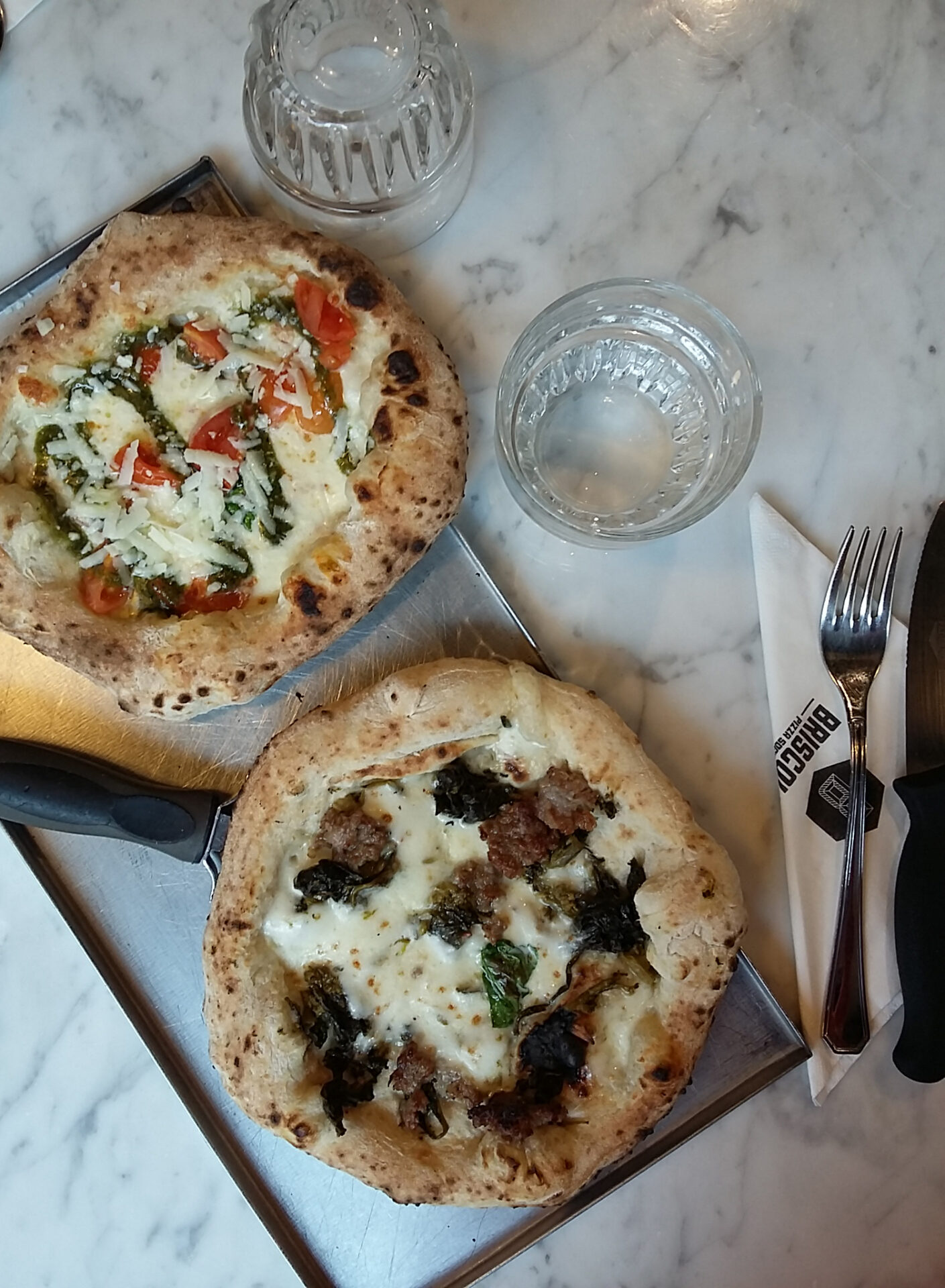 Ebbene, da Briscola Pizza per ovviare a questa usanza hanno pensato ad una soluzione, infatti si ha la possibilità di ordinare due pizze piccole, anche dette ‘pizzette’ di gusti diversi, al posto di una sola pizza grande (a mio parere le due pizzette sono più grandi di una sola pizza!), in modo da poter gustare più condimenti diversi, ordinarne più tipologie e condividerla con tutto il tavolo.