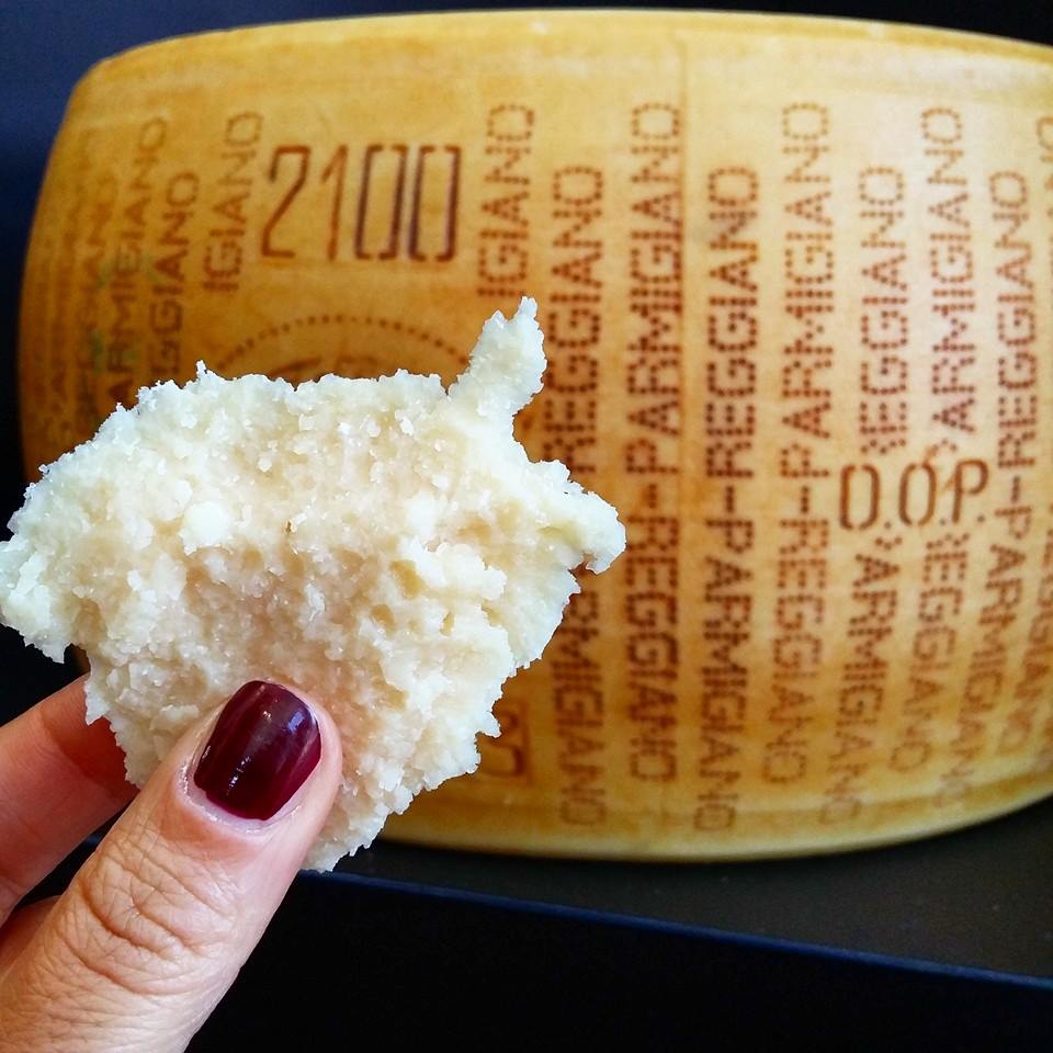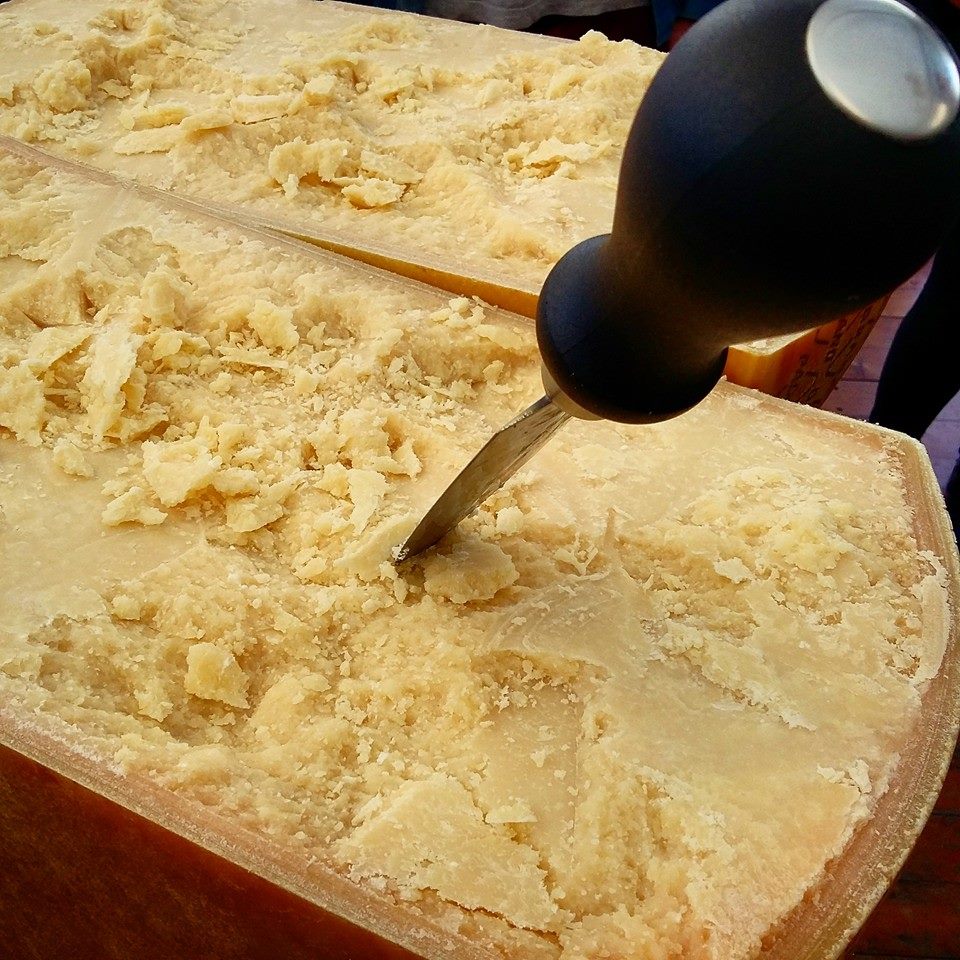 Il benvenuto che ci ha riservato Ferrari Formaggi a Brà è sicuramente stato dei migliori. Ad accoglierci due forme giganti, una di Parmigiano Reggiano e l’altra di Grana Padano Gran Riserva. La cosa più affascinante è senza dubbio la loro apertura. Una sequenza affascinante quanto sistematica. Prima la battitura per testarne la qualità e l’integrità, poi l’incisione, il taglio e infine l’analisi sensoriale, olfattiva e gustativa. Uno spettacolo che ti incanta. Così come ti incanta il loro gusto. Dopo l’assaggio di entrambi, ho ancora una volta la conferma: il mio grande amore è il Parmigiano Reggiano, nonostante il Grana Padano Gran Riserva abbia vinto la Medaglia D’oro nella categoria Hard Italian Cheese (formaggi Duri Italiani) al Cheese Award di Nantwich.
