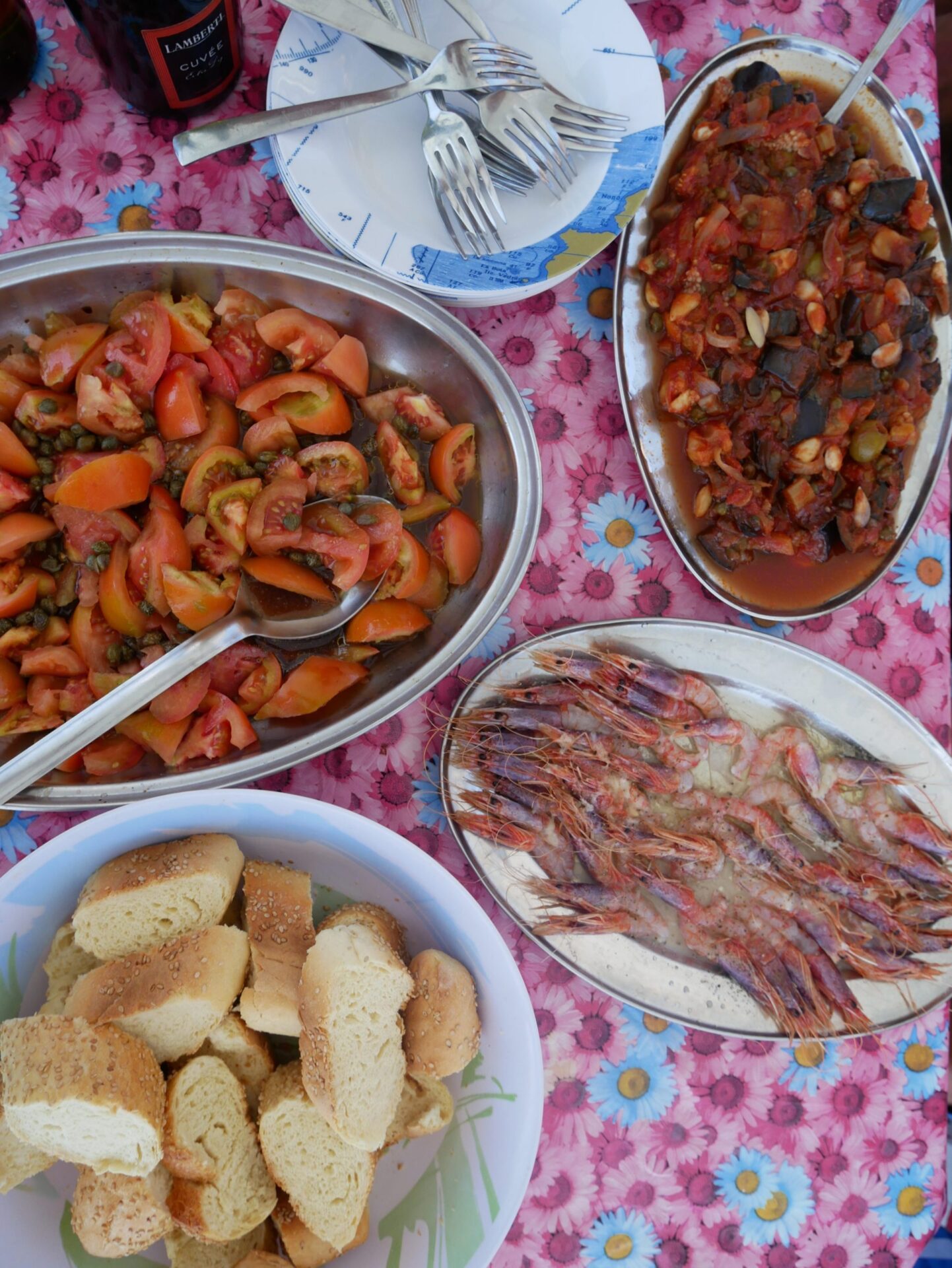 Godersi il mare cristallino da una barca, ammirare le scogliere in tutta la loro imponenza e mangiare pesce fresco al largo, è un’esperienza che non deve mancare e che vi regalerà una giornata assolutamente straordinaria. Io ho scelto lo Zephir, la barca del ‘mitico’ Pasquale, lampedusano doc, innamorato della sua isola e del mare, che ci ha accolti con tutta la cordialità e la simpatia immaginabili. Ci ha fatto ammirare scorci paradisiaci, ci ha lasciato fare lunghi bagni nelle ‘piscine’ sconfinate di Lampedusa, ci ha portati ad avvistare i delfini (che abbiamo fortunatamente visto) , ci ha raccontato aneddoti lampedusani e ci ha preparato un pranzo a bordo da far invidia anche ai migliori ristoranti gourmet. Gamberi rossi crudi, caponata, alici marinate, tonno sott’olio fatto in casa, insalata di pomodori e capperi e spaghetti con calamari e scampi. E che ve lo dico a fare…. spettacolo puro! Se volete il suo numero vi basterà chiedere al porto.