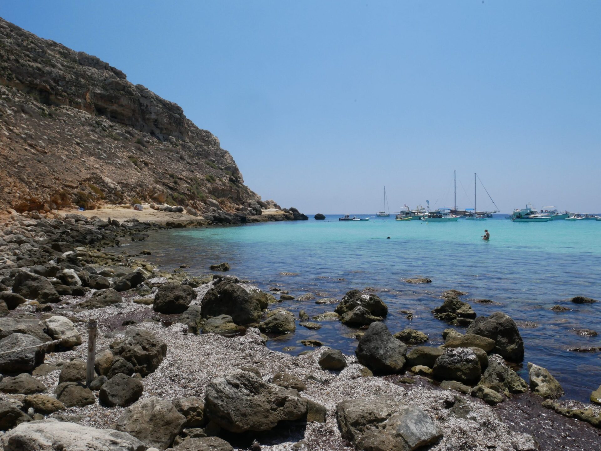 - Cala Pulcino: questa caletta è un’altra chiccha di Lampedusa che vi consiglio di vedere perchè è assolutamente singolare con un mare altrettanto speciale, anche se (si, ci sono dei se), ho alcune informazioni che devo assolutamente scrivervi. La spiaggia di Cala Pulcino non è di sabbia ma è formata da piccoli ciottoli, quindi se non siete amanti di questa tipologia di mare ve la sconsiglio.
