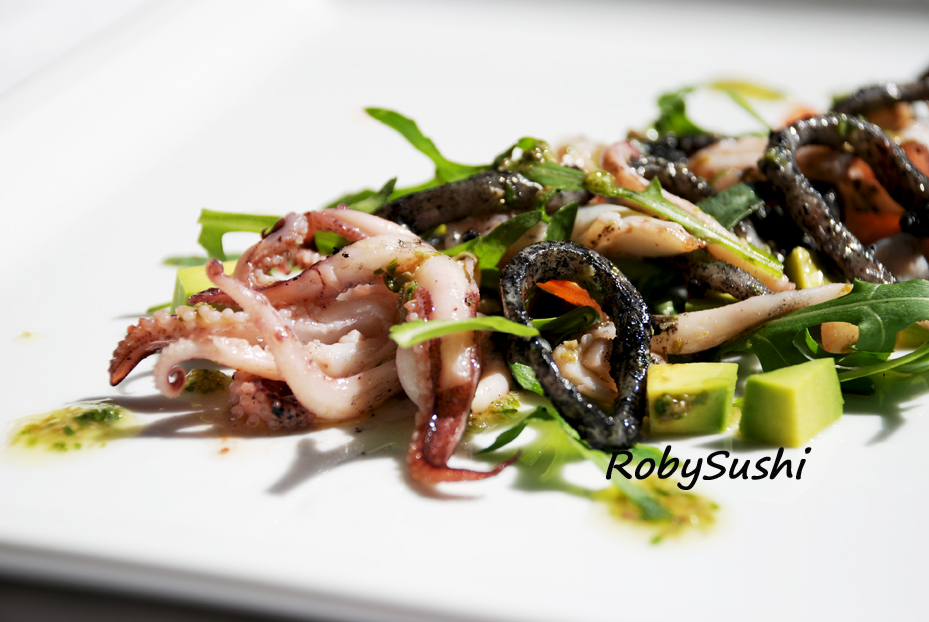 Lo ammettoo a me piacciono i piatti di ‘sostanza’, datemi una carbona, una gricia o una amatriciana e mi fate felice, però quando le belle giornate si iniziano a far largo, il sole e il caldo sono la cornice perfetta della mia giornata, ogni tanto ho voglia anche di piatti freschi e leggeri, per questo ho pensato a questa insalata! Un piatto da proporre o come antipastino, o come secondo o, aumentando le quantità e accompagnandolo con una bruschetta con olio extra vergine d’oliva, come piatto unico….insomma un solo piatto, ma tante soluzioni: insalata calda fredda di calamari e avicado!