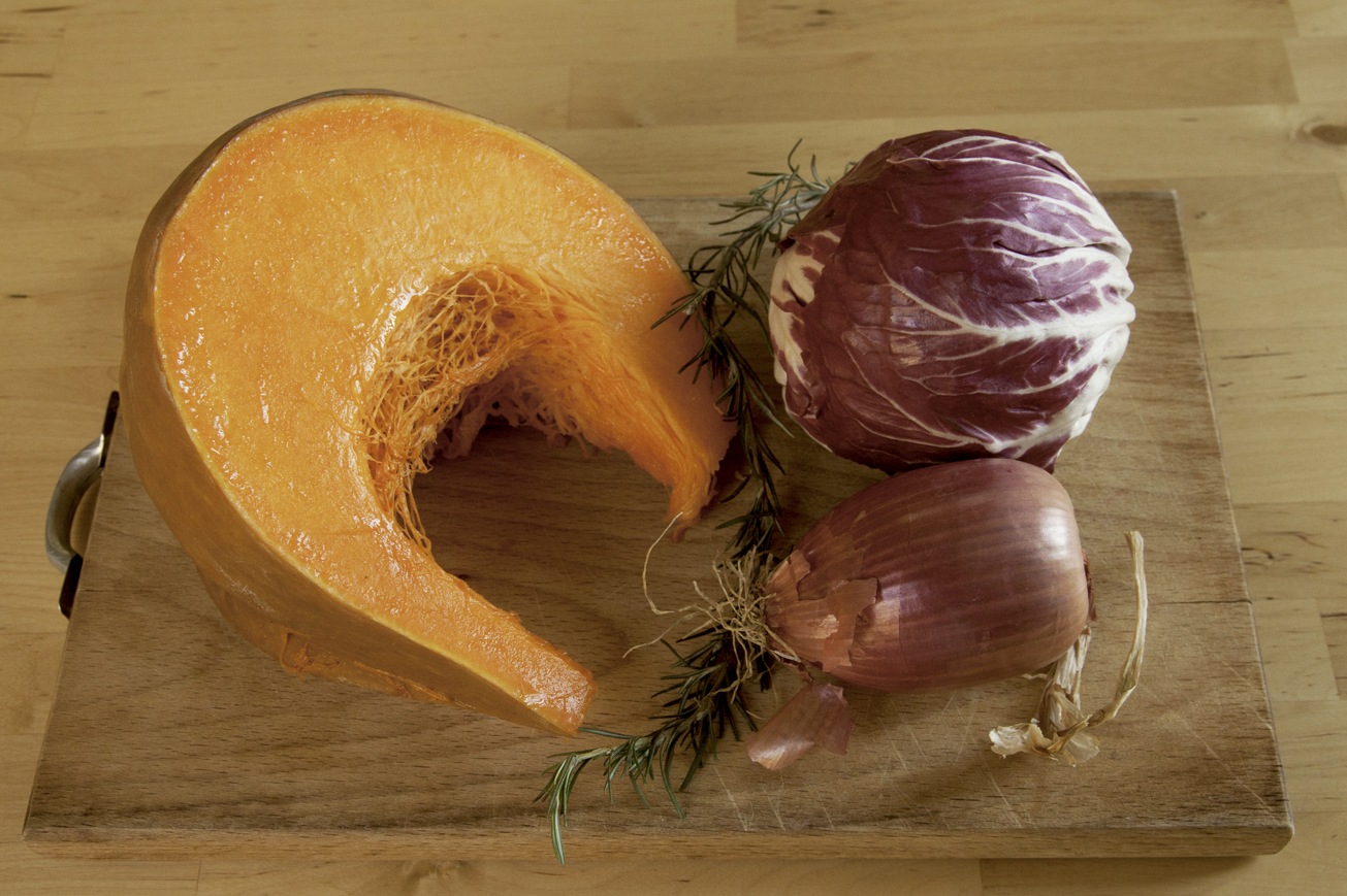 radicchio; zucca; mozzarella; parmigiano grattugiato. Ripetere per quattro strati di ripieno o di più