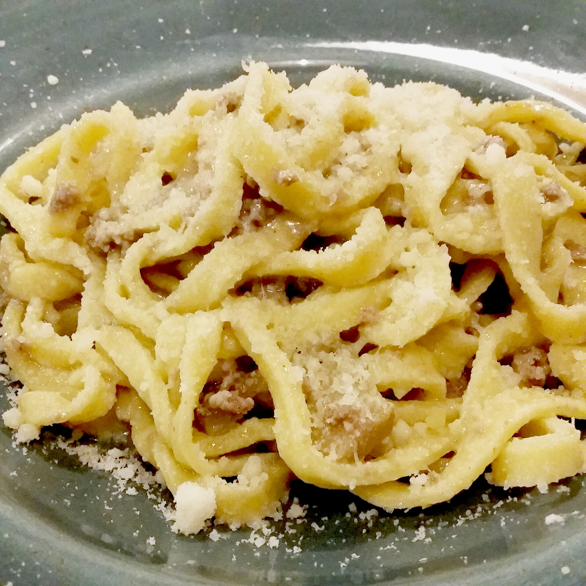 L’antipasto della casa è un trionfo. Semplice, abbondante, gustoso. Salumi e formaggi, freschi e stagionati, accompagnati da pizzette fritte davvero ben fatte. Croccanti, friabili e sopratutto non unte, ma al contrario super asciutte. A finire fagioli in umido e altri piatti della casa che variano in base alla disponibilità delle materie prime. I primi piatti sono semplicemente straordinari, io ho provato le fettuccine con ragù bianco, e ….wow! Dopo tanto tempo, ho finalmente ritrovato in un’osteria le fettuccine ‘fatte a mano’, ma fatte a mano per davvero!!!