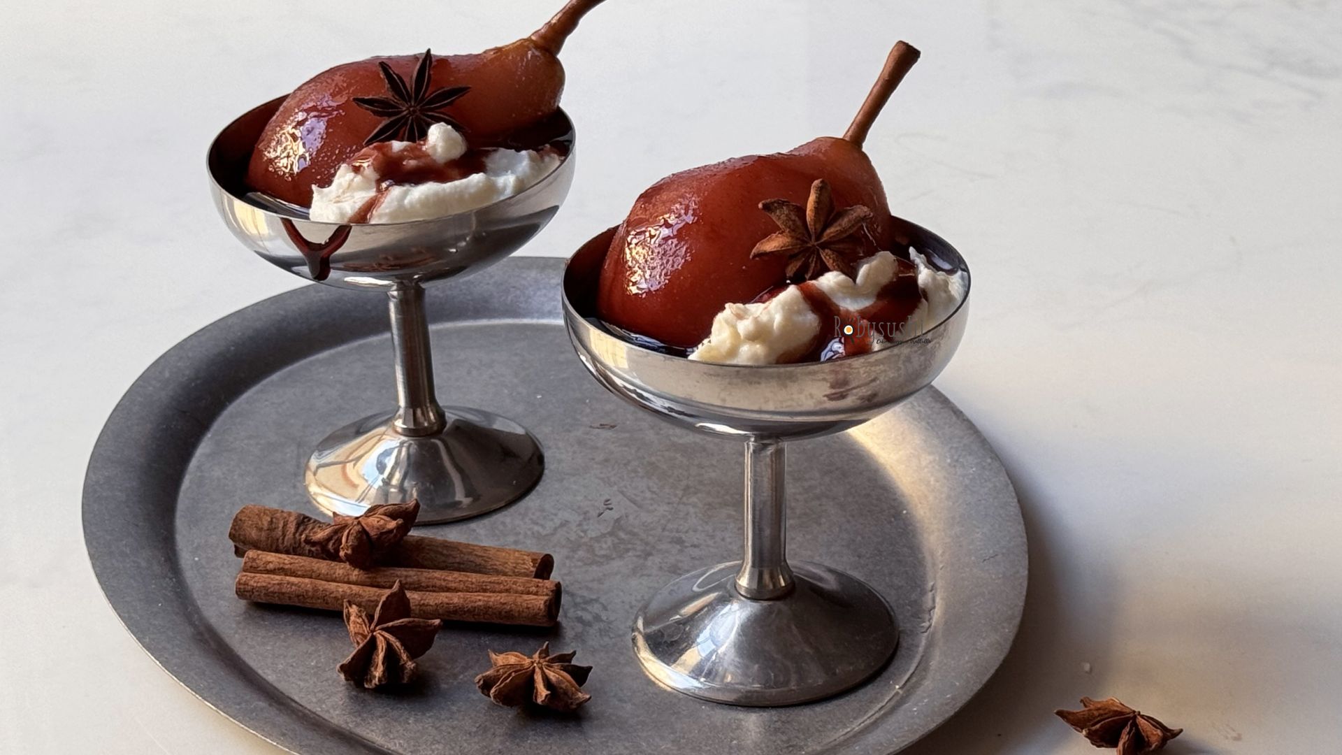 Pere al vino rosso con ricotta aromatizzata al limone, un dolce buonissimo e scenografico, da preparare senza bilancia. Non ci credi, allora guarda qui!