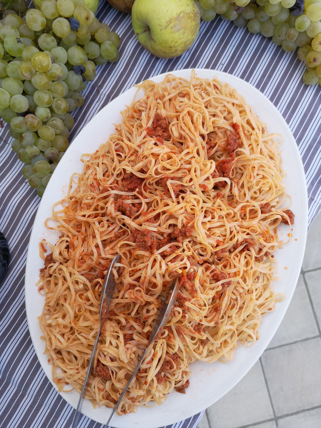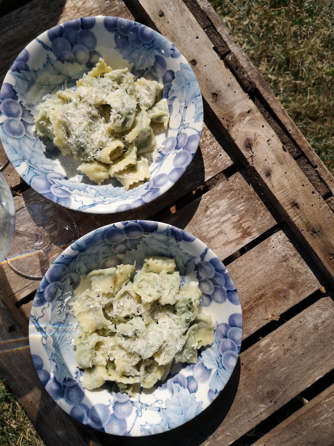 Non c’è vendemmia che si rispetti, che no si concluda con un pranzo degno di nota e con un brindisi al lavoro fatto. E quindi, forchetta in mano, ho assaporato il Piemonte in tutte le sue sfumature: agnolotti del plin con burro e salvia e tajarin al sugo di cane rigorosamente preparati a mano , dalla mamma del Signor Mario Sandri, proprietario della Villa. E ancora selezione di formaggi e affettati locali, pane fatto in casa, e bunet, il tutto annaffiato e assaporato con il calice sempre pieno di bollicine Cinzano, ovviamente!
