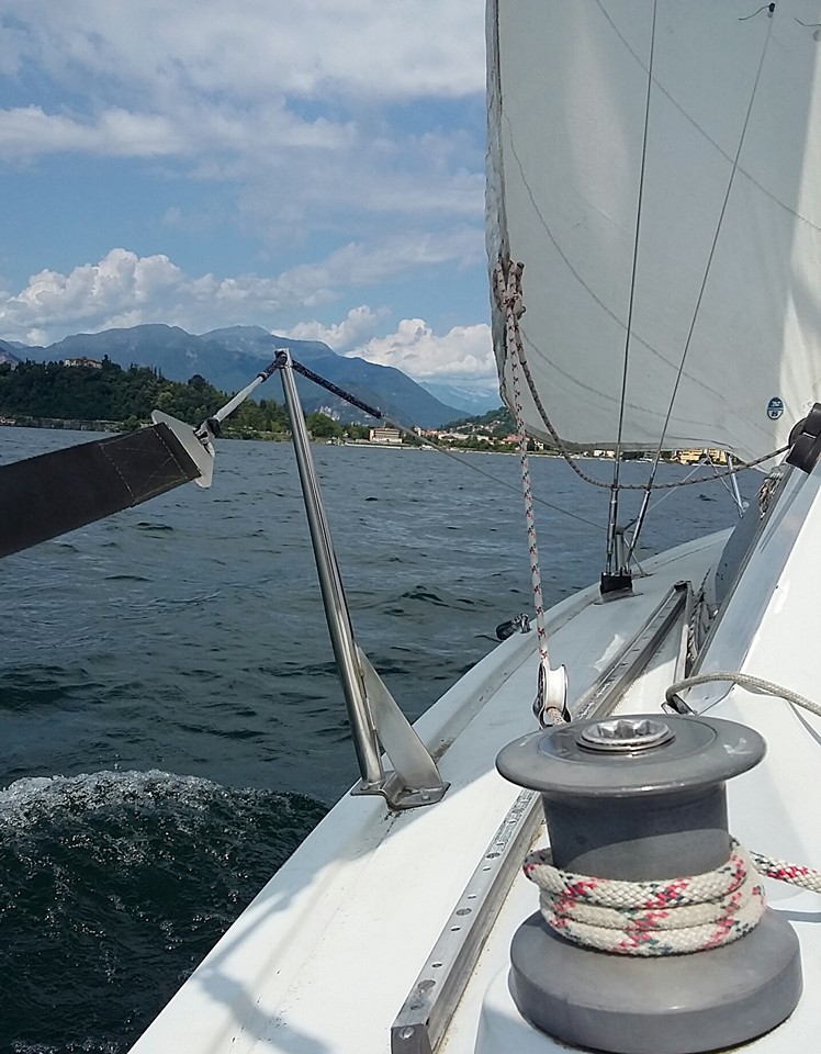 La barca a vela è ‘una roba tosta’, impegnativa, parecchio impegnativa. Bisogna prestare attenzione ad ogni minimo dettaglio, avere occhi per tutto e tenere sott’occhio ogni singolo elemento che compone la barca. Inoltre bisogna avere una sensibilità sopraffina per ‘capire’ il vento, entrare in sintonia con esso, e sfruttarlo….insomma, ci si tiene sempre attivi. Da passeggeri però la sinfonia è ben diversa. Ci si gode il sole, il vento che ti spettina i capelli e il panorama che si presenta davanti a te, solo per farsi ammirare in tutta la sua bellezza. E il lago Maggiore di bellezza ne offre davvero tanta, tanto che non sapevamo dove guardare.